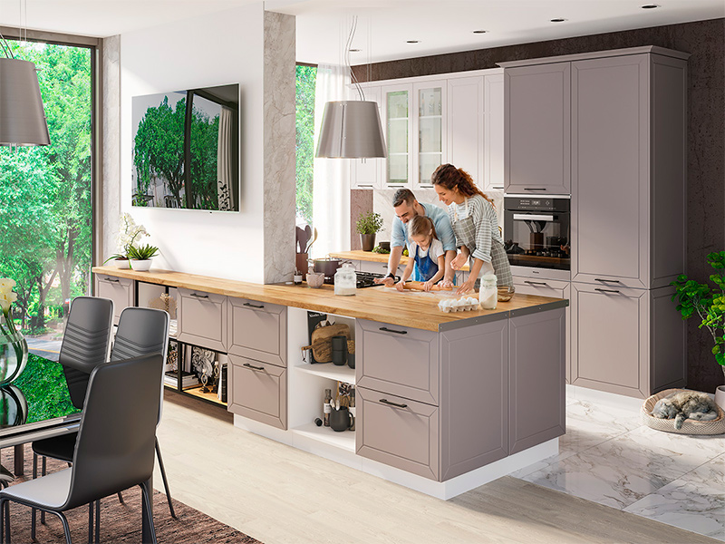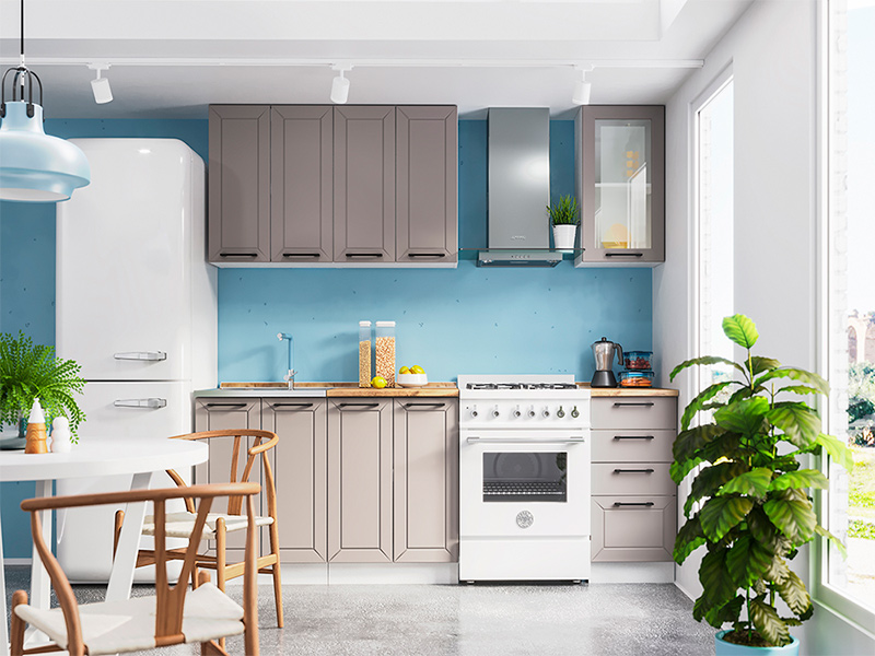 Кухня Кельн тумба ШНМ 800 бел фасад ШНМ 800 софт тоффи + столешница семолина 0.8